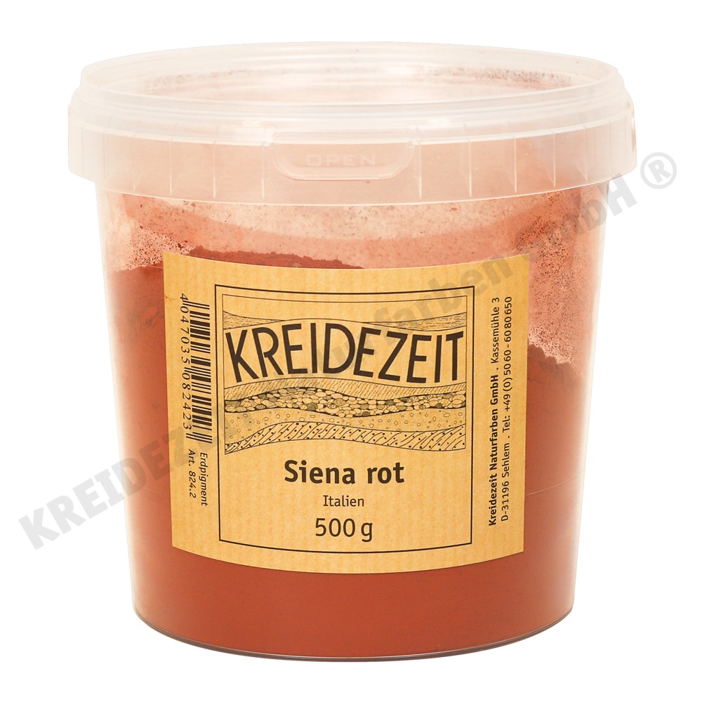 Erdpigment, hergestellt durch Brennen gelber Terra di Siena. Terra di Sienna enthält im Gegensatz zu den Ockern einen gewissen Anteil an Silikaten. Mit allen Pigmenten und Bindemitteln verträglich, ein ausgezeichnetes